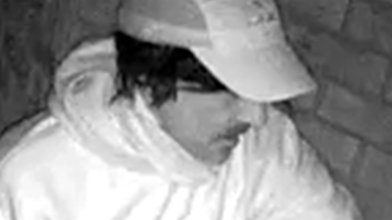 The brief video clip shows the suspect holding the box in front of him as he stands at the door waiting for it to be opened.